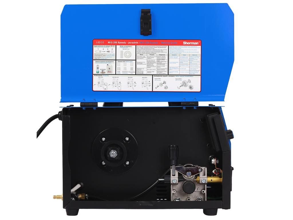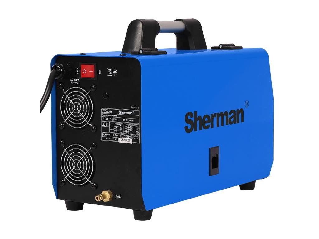 Giga set invertorová svářečka CO2 SHERMAN MIG 200 SPEEDY určená pro svařování oceli a neželezných kovů. Možnost zvaření drátem (MIG/MAG) a elektrodou (MMA). Při změně polarizace lze svařovat i trubičkovým (trubkovým) drátem bez použití plynu.