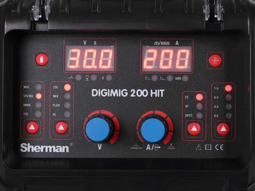 Giga set svářečka CO2 DIGIMIG 200 HIT Sherman je moderní, synergické zařízení určené pro ruční svařování oceli a neželezných kovů.
