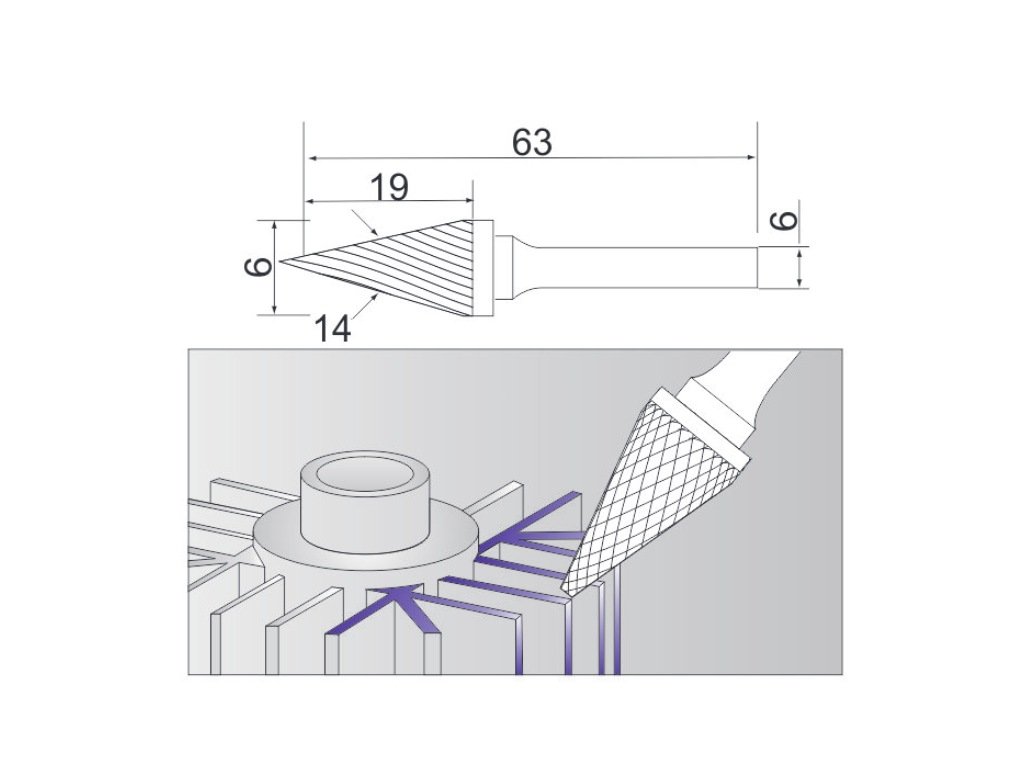 Kuželová fréza 14° na kov (typ M) 6x19/6 mm Sherman
