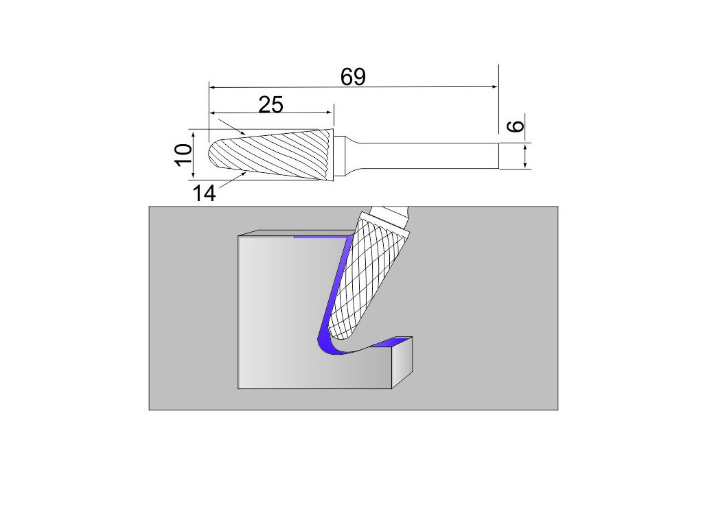 Kuželová zaoblená fréza 14° na kov (typ L) 10x25/6 mm Sherman