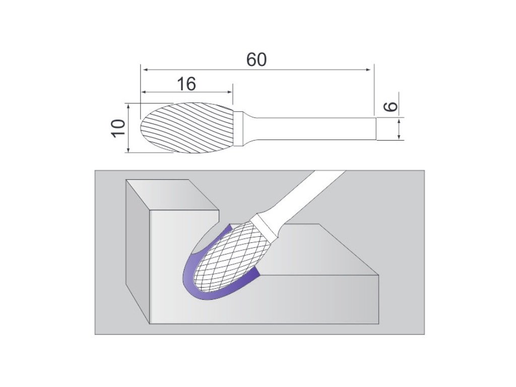 Oválná fréza na kov (typ E) 10x16x6 mm Sherman