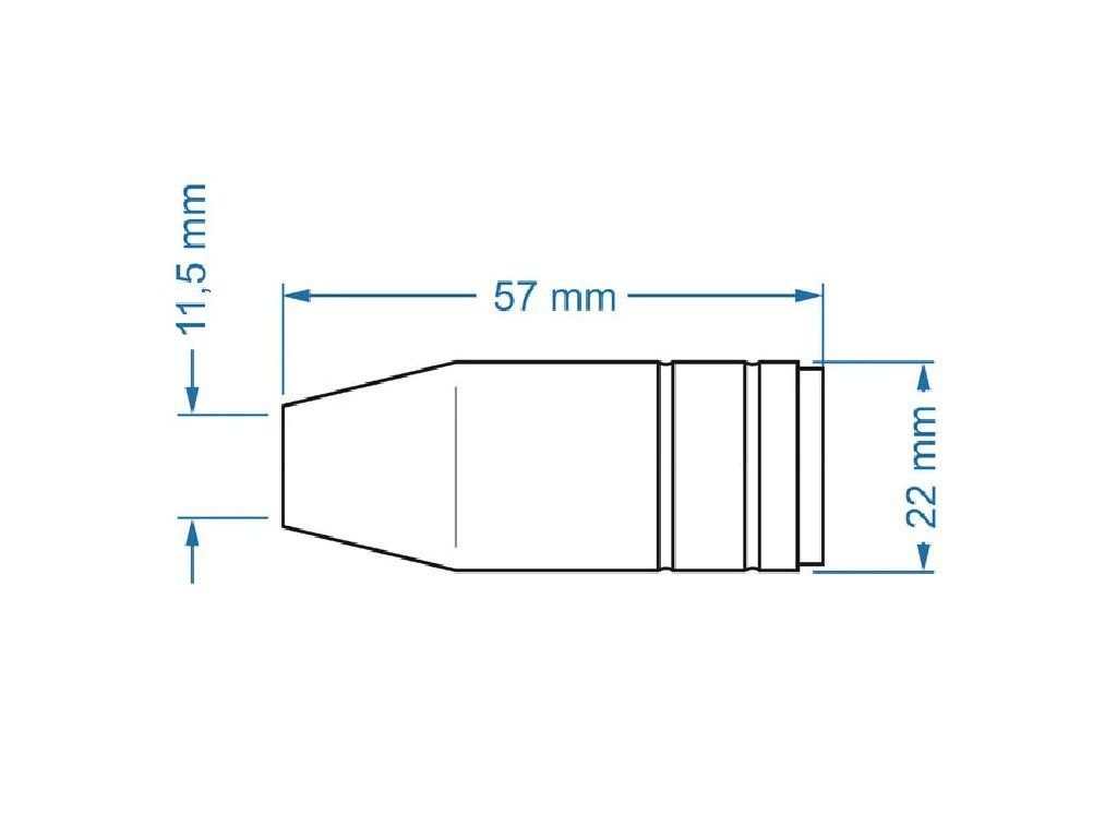 Plynová hubice 11,5/22 x 57 mm ostře kónická univerzální pro všechny hořáky typu MB 25. Nasouvá se, délka je 57 mm.