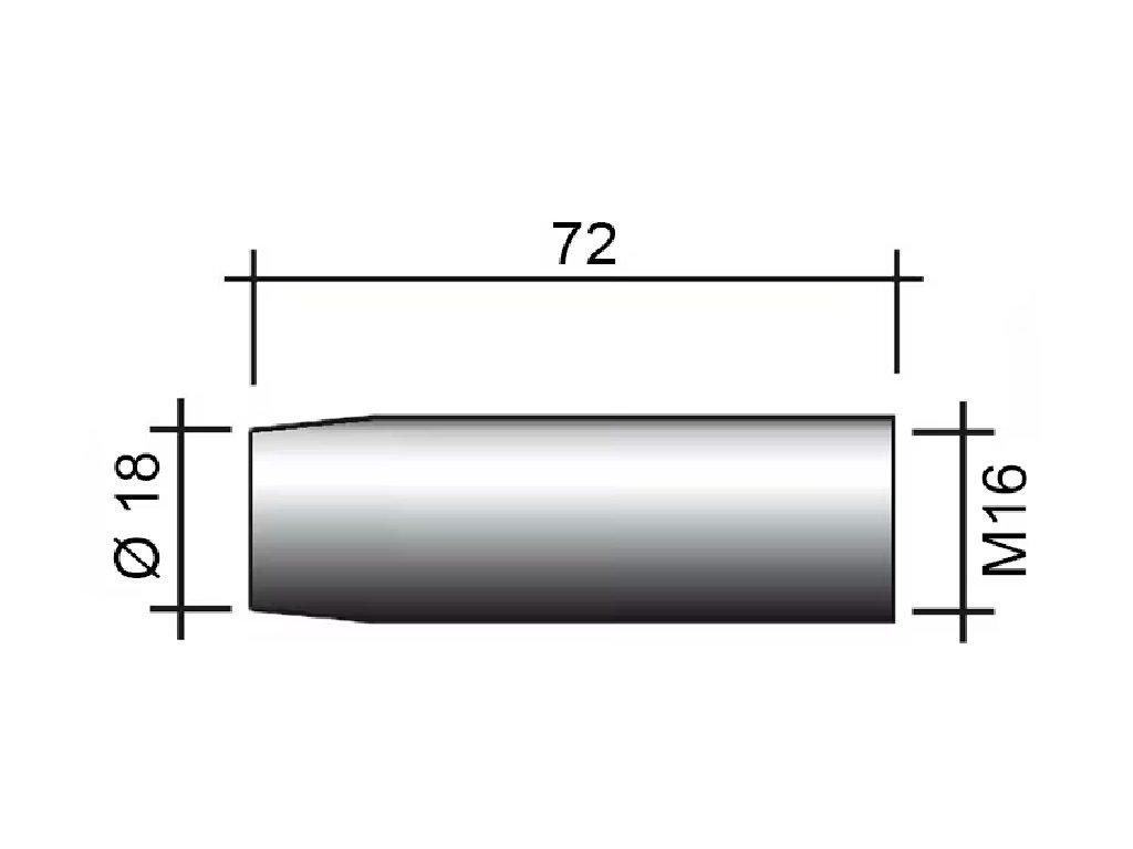 Plynová hubice 18 x 72 mm M16 šroubovací kónická pro hořáky Binzel AT 305, AT 355, AT 405
