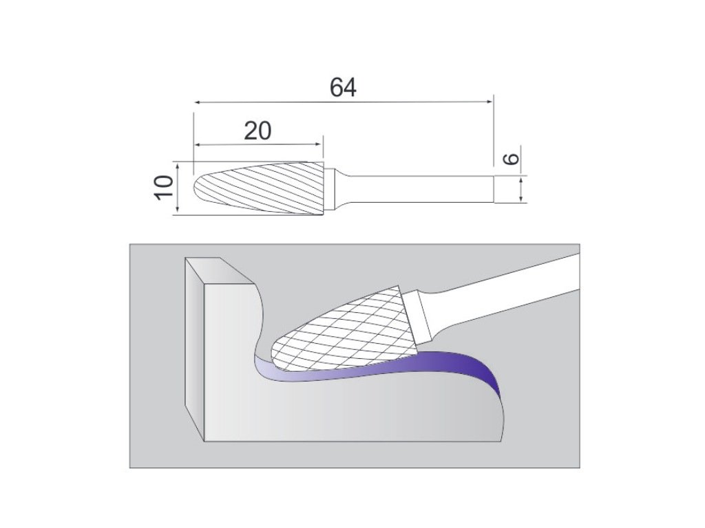 Stromečková zaoblená fréza na kov (typ F) 10x20/6 mm Sherman
