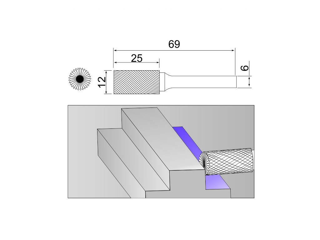 Válcová fréza s čelním ozubením na kov (typ B) 12x25/6 mm Sherman