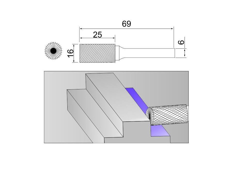 Válcová fréza s čelním ozubením na kov (typ B) 16x25 / 6 mm Sherman