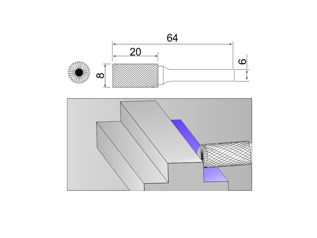 Válcová fréza s čelním ozubením na kov (typ B) 8x20/6 mm Sherman